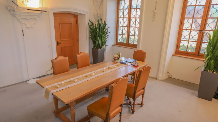 | Kosten | Die Lokalmiete ist kostenlos. Die Gebühren für das Ehevorbereitungsverfahren und die Trauung werden gemäss eidgenössischer Gebührenverordnung (ZStGV) separat erhoben. |