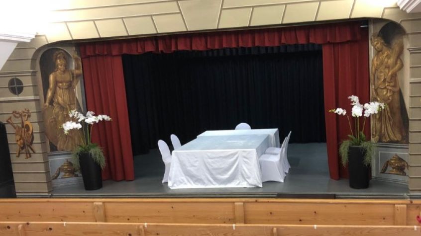 | Sitzplätze für Gäste | Theatersaal Bestuhlung für 100 Gäste. |