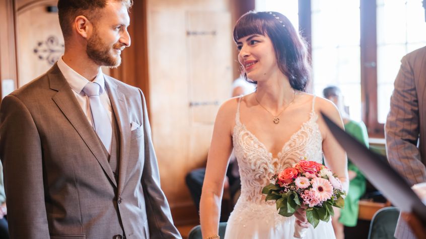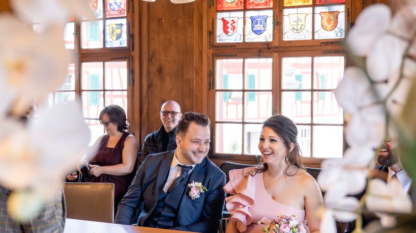| Wie viele Stunden braucht man einen Fotografen? | Das kommt darauf an, was ihr möchtet. Um wirklich im Nachhinein nochmals richtig eintauchen zu können in eure Erinnerungen, braucht man die Fotografin/den Fotografen für alle wichtigen Tagespunkte: Vorbereitung, Trauung, Apéro, Spiele, Essen, Torte anschneiden, Hochzeitstanz... Wenn euer Budget aber klein ist, empfehle ich, dass ihr auf jeden Fall die Trauung und den Apéro mit nehmt. |